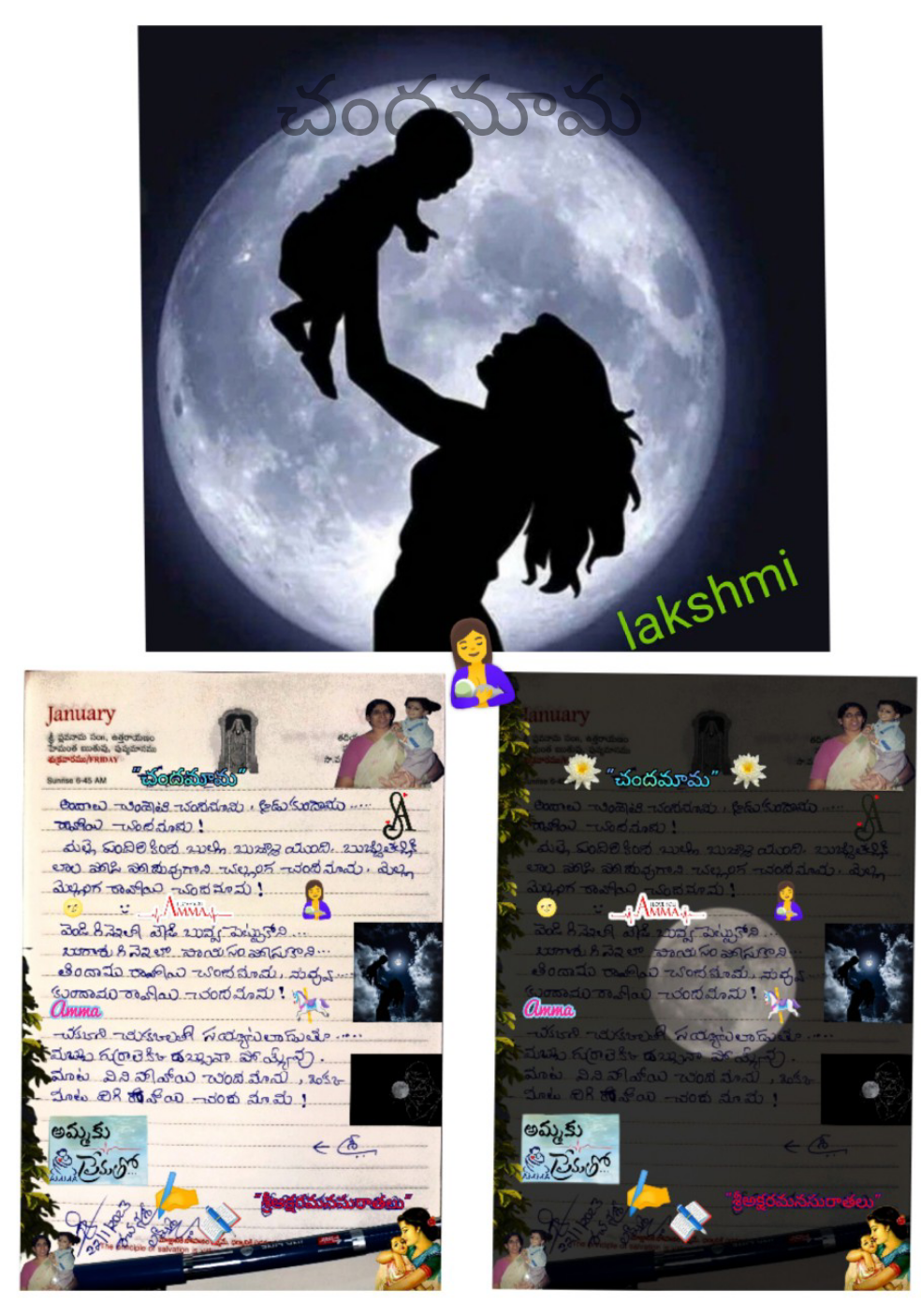మల్లి పందిరి క్రింద బుల్లి బుజ్జాయుoది, బుజ్జితల్లికి లాల పోసి పోదువుగాని చల్లoగ చందమామ, మల్లే మెల్లoగ రావోయి చందమామ ..!