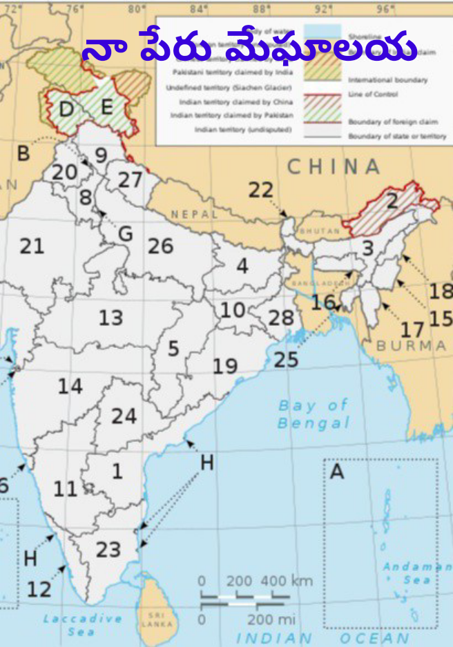 నేను దేశంలో ఈశాన్యప్రాంతంలో 300 కి.మీ. పొడవు,100 కి.మీ. వెడల్పు ఉండే ఒక చిన్న రాష్ట్రన్నీ