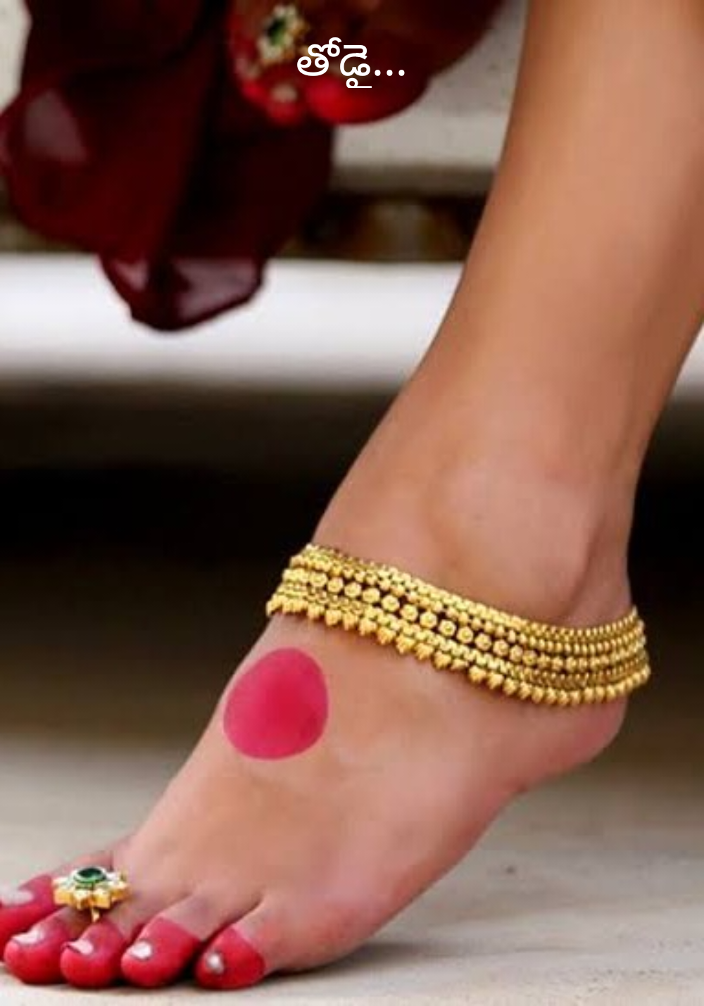 పారాణి దిద్దిన పాదాలను అడుగు
