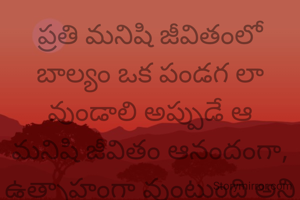 ప్రతి మనిషి జీవితంలో బాల్యం ఒక పండగ లా వుండాలి అప్పుడే ఆ మనిషి జీవితం ఆనందంగా, ఉత్సాహంగా వుంటుంది అని ఒక నానుడి.