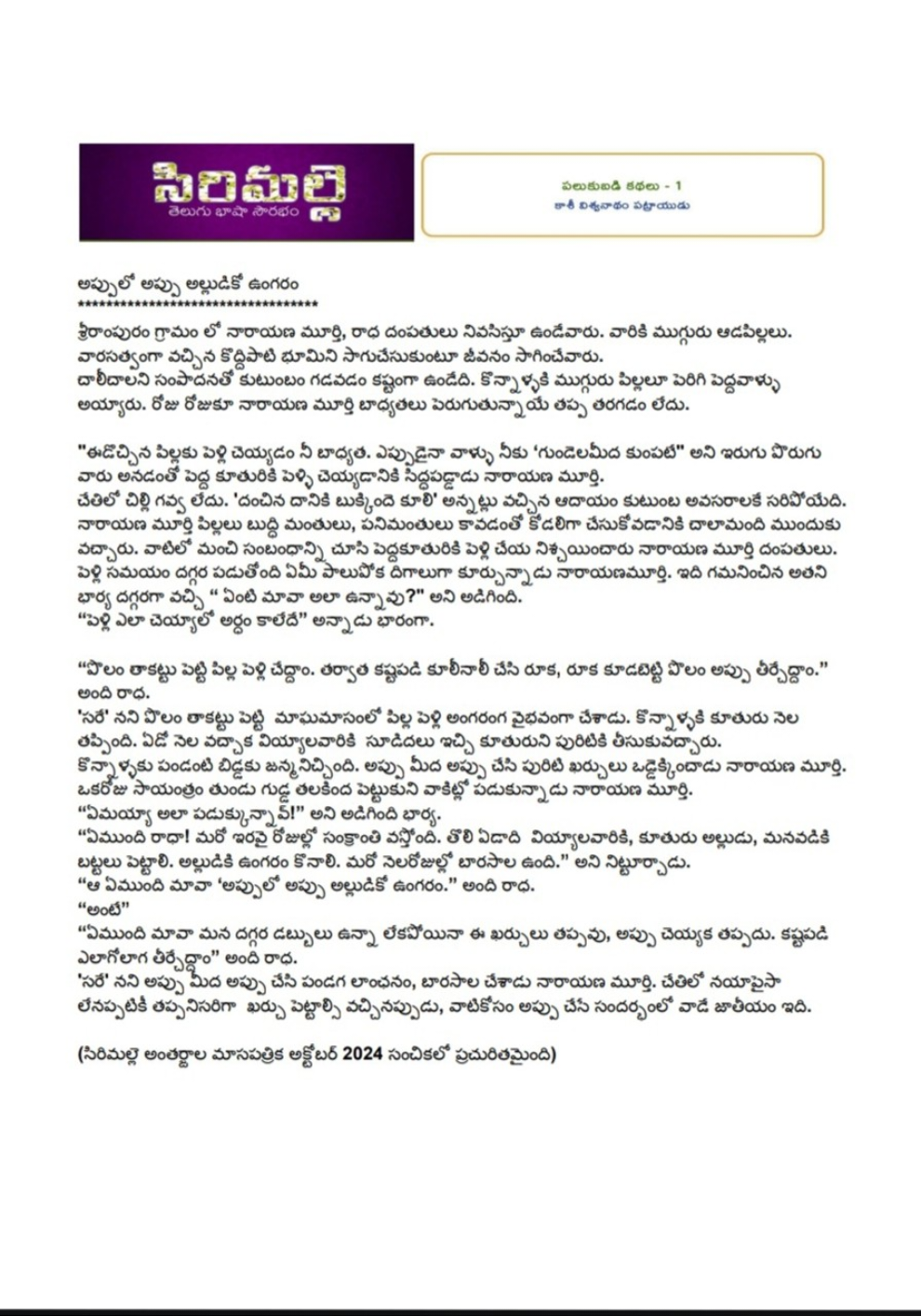 (సిరిమల్లె అంతర్జాల పత్రిక అక్టోబర్ 2024 సంచికలో ప్రచురితమైంది)