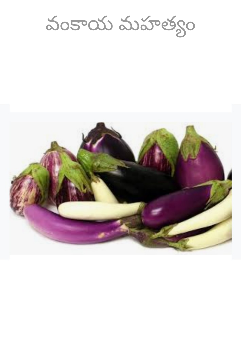 "సర్లే అమ్మా...అమ్మ ఎలాగూ ఒక్క వంకాయ కూరతో సరిపెట్టదు కదా...దానితో పాటూ సాంబారూ, కొబ్బరి పచ్చడి, అప్పడాలు, బంగాళదుంప వేపుడు కూడా చేస్తుంది. దానితో పాటూ కొత్తావకాయ కూడా రుచి చూపిద్దాం". అయినా...వంకాయతో చేసినన్ని రకాల కూరలు ఏ కాయగూరతోనూ చేయలేము. పచ్చడి, పులుసు, వంకాయ పచ్చిపులుసు, వంకాయ కారం, వంకాయ ఇగురు కూర, వంకాయ వేపుడు, గుత్తివంకాయ ఇలా ఎన్నెన్నో చేయొచ్చు" అంటూ తండ్రి పరమేశం లొట్టలేస్తుంటే...ఇక చెప్పడం అనవసరమని నెమ్మదిగా లోనికి జారుకుంది శ్రావ్య.